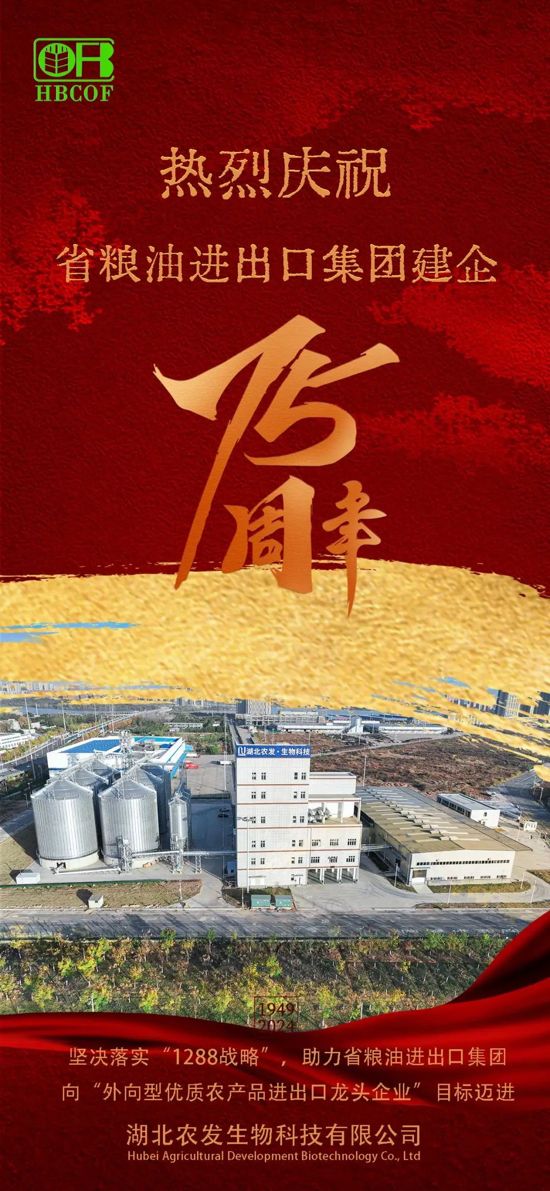 七十五載輝煌路,是我們的驕傲;共話企業新征程,是我們的使命。農發生物科技將把貫徹落實湖北農發集團黨代會精神同貫徹落實黨的二十屆三中全會和省委十二屆七次全會精神結合起來,在省糧油進出口集團的指導下,圍繞“實體+進出口+貿易”的工作主基調,謀深抓實陽邏港糧食加工項目的運營,為助力湖北農發集團實現“全國一流現代農業產業集團”和省糧油進出口集團打造“外向型優質農產品進出口龍頭企業”貢獻力量。